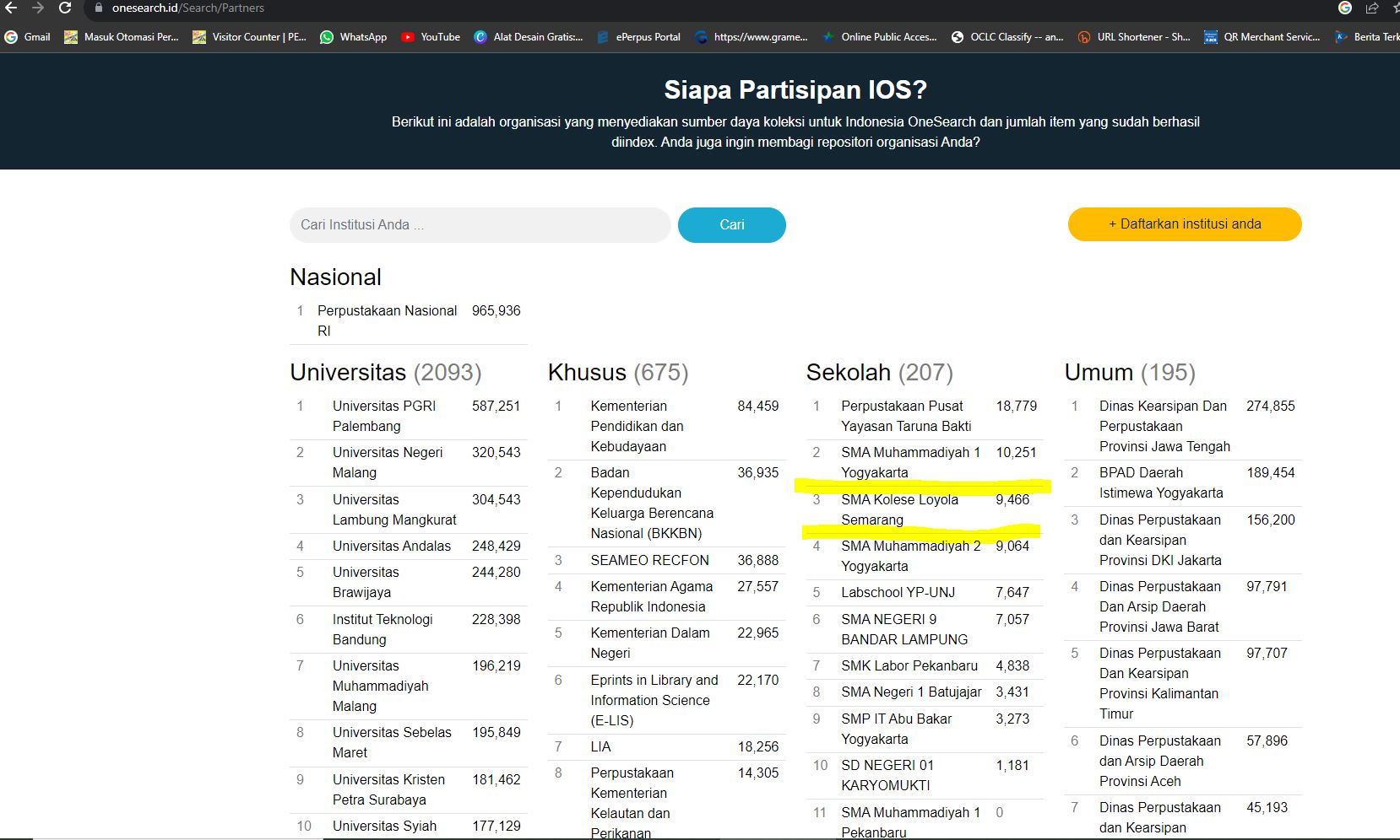 Perpustakaan SMA Kolese Loyola di Indonesia Onesearch