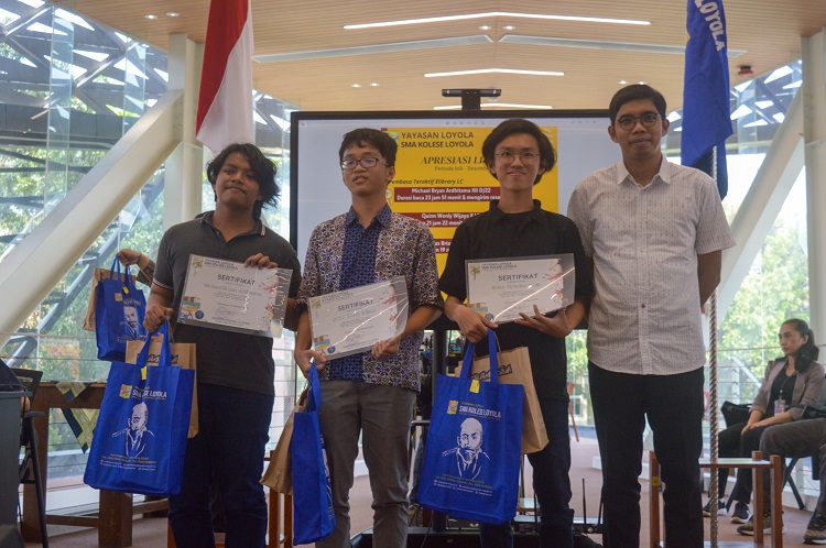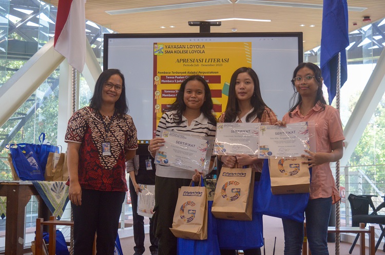 Dalam kegiatan ini, turut dilakukan penyerahan Apresiasi Literasi periode Juli - Desember 2023 kepada pembaca terbanyak dan pembaca teraktif koleksi buku dan e-book perpustakaan SMA Kolese Loyola. (ca).