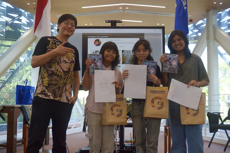 Peserta dan hadirin juga aktif menyampaikan pertanyaan dari pemaparan materi yang diberikan oleh Kak Is Yuniarto. Selain itu, dipilih juga 3 peserta dengan hasil ilustrasi terbaik menurut Kak Is yang berhak mendapatkan hadiah buku seri Bumilangit.